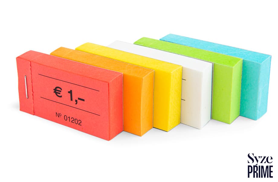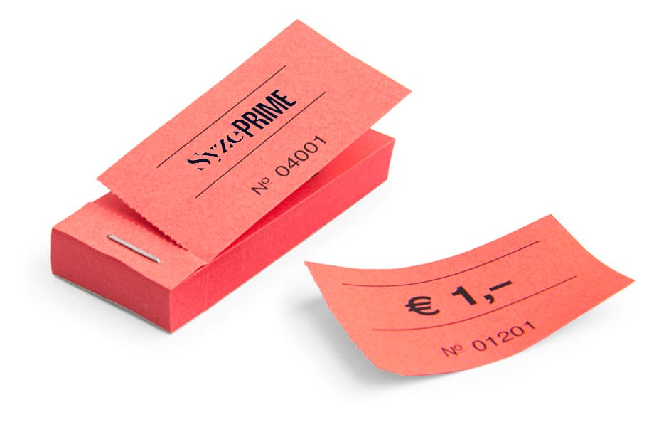 Sia già pronti per l’uso che personalizzati con il tuo motivo: questi buoni sono l’alternativa ideale al denaro contante negli affollati stand di cibo e bevande. Ma i buoni in blocchetto sono anche estremamente pratici come ticket d’ingresso o titoli di viaggio. Basta staccarli singolarmente dal blocchetto e distribuirli ai clienti. Così potrai tenere traccia di tutto e garantire un’operatività senza intoppi.