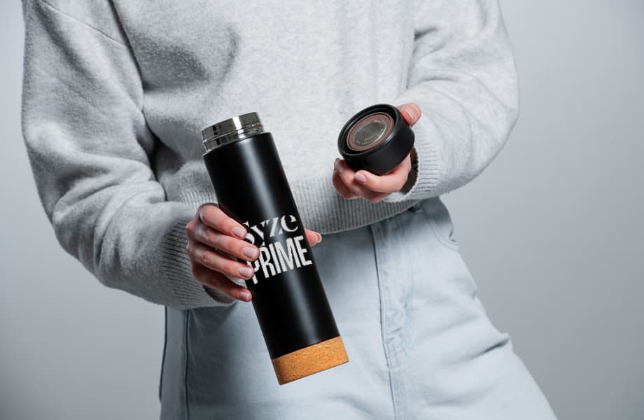 Queste borracce termiche dal bel design hanno un aspetto incredibilmente elegante. Il fondo bottiglia con isolamento in sughero è un ulteriore elemento di richiamo, che conferisce alle borracce isolate a parete doppia un aspetto naturale. Inoltre puoi personalizzarle con l’incisione laser di alta qualità che risalta magnificamente sulla superficie nera opaca.