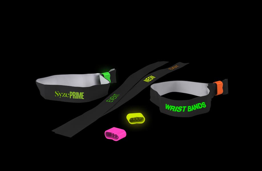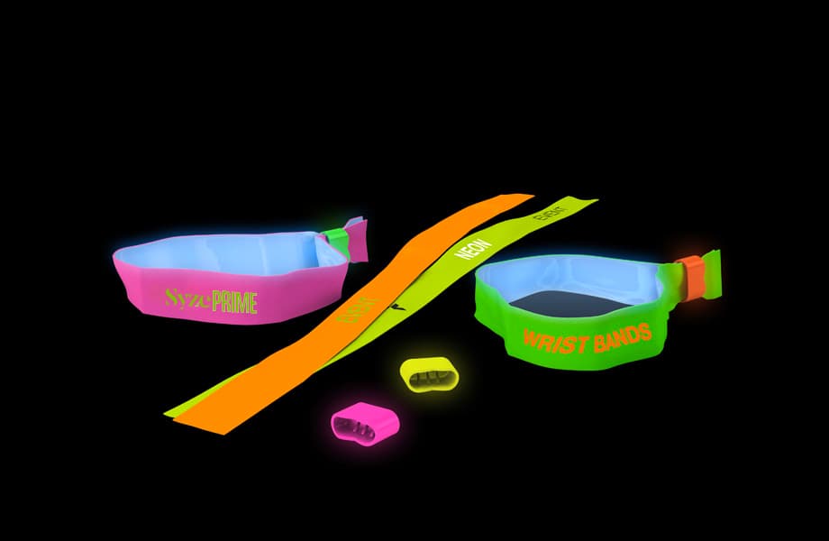 Braccialetti identificativi in tessuto, stampati con colori neon