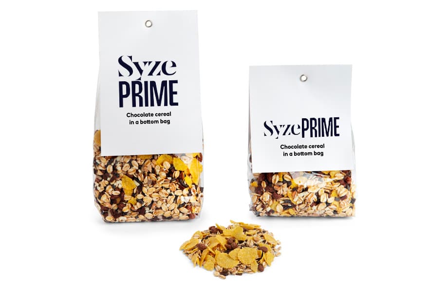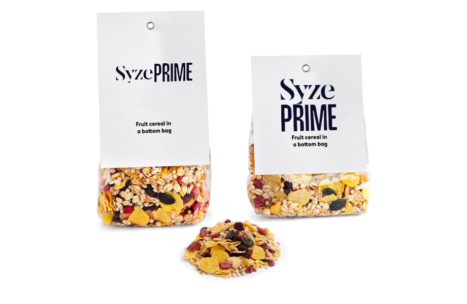 Cosa desideri? Cioccolato o meglio frutta? Il muesli con etichetta piegata consente di scegliere tra 2 deliziosi gusti. Non importa quale sceglierai: grazie alla busta con ampio fondo, il muesli ha una base stabile e quindi può essere conservato in verticale offrendo una vista perfetta sull’etichetta ripiegata. Qui avrai spazio a sufficienza per il tuo motivo personalizzato. Così il tuo marchio accompagnerà clienti e collaboratori già di prima mattina e farà cominciare loro la giornata nel migliore dei modi.