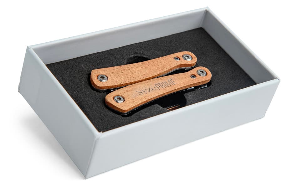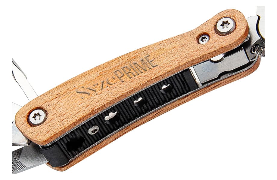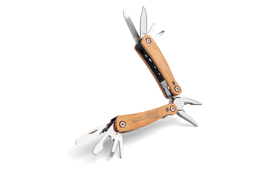 Compatto, utile e sempre con te: chi viaggia molto prima o poi avrà bisogno di un accessorio multiuso. Perfetto per un viaggio in campeggio, un’escursione o una grigliata. Personalizzalo con il tuo logo e includilo nel tuo portafoglio di prodotti promozionali.utensili in acciaio inossidabile, manico in legno di faggiodimensione: 2 x 3,4 x 7,2 cmcon incisione laser su manico in legnoarea di incisione: 0,7 x 3 cmutensili: pinze, apertura dentata, taglierino laterale, lama seghettata, apribottiglie, 3 cacciaviti a taglio, 2 coltelli, cacciavite a stella, limapeso: 155 gconsegnati in confezione regaloa partire da 25 esemplari Nota: per ogni ordine viene stampato un solo motivo grafico.