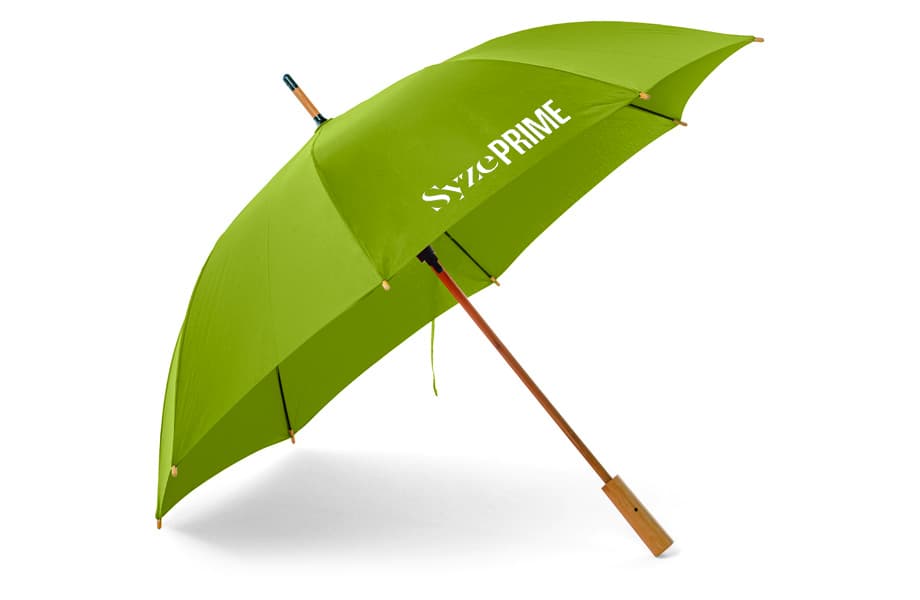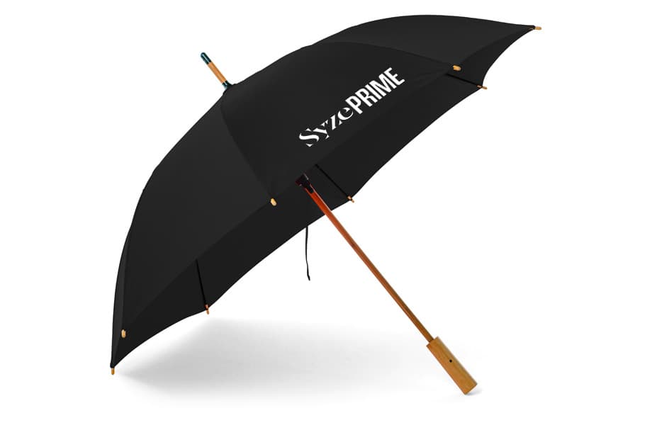 Brutta pioggia? Sgradevole raffica di neve? Acquazzoni sorprendenti? Fantastico, d'ora in poi sono un motivo per essere felice. Quando i tuoi clienti apriranno il loro ombrello ecologico fatto di plastica riciclata e bambù per proteggersi dall'umidità con la coscienza pulita, inevitabilmente vedranno il logo della tua azienda.