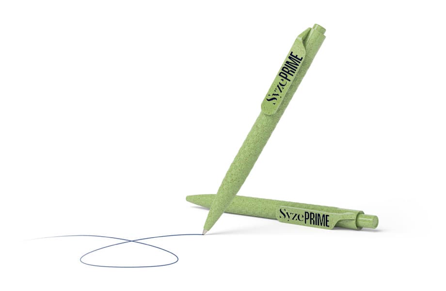 La plastica utilizzata per realizzare questa penna a sfera è costituita in parte da scarti della raccolta del grano. In questo modo, si risparmiano combustibili fossili ottenendo al contempo un look e una sensazione al tatto senza uguali. Approfittane per mettere in risalto la tua azienda e fai stampare il tuo logo in un massimo di tre colori sulla clip della penna a sfera in paglia di grano.
