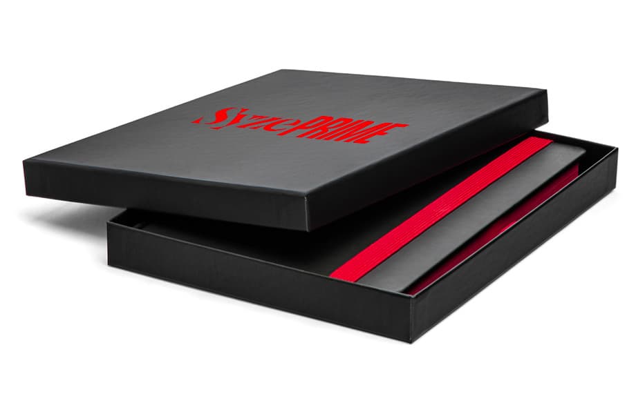 All’interno di questa stabile scatola ad incastro in formato DIN i quaderni per appunti, i planner annuali o i fotolibri stampati avranno un aspetto ancora più pregiato. Questo vale soprattutto se fai personalizzare questa confezione di alta qualità con la stampa del tuo logo. Inserisci la stampa dove preferisci sul cartoncino nero o bianco e regala una gioia ai tuoi clienti e partner migliori: non lo dimenticheranno.